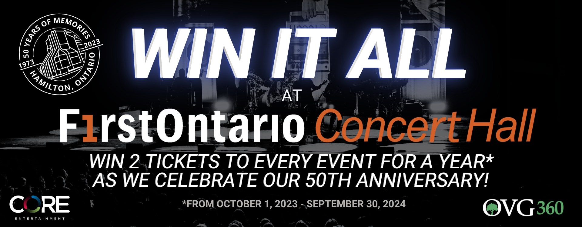 To celebrate we are giving YOU the chance ot win TWO (2) tickets* to every event at FirstOntario Concert Hall from October 1st, 2023 to September 30th, 2024.