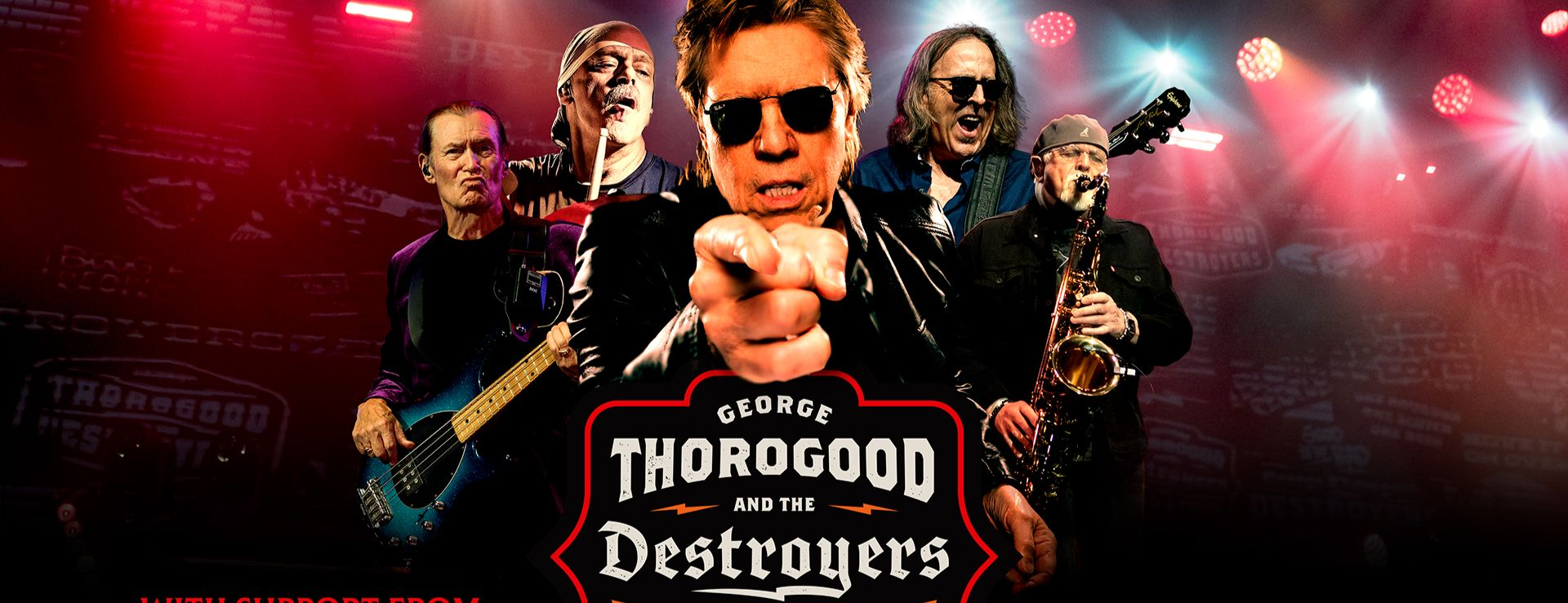 For an artist whose music honors the blues, rock and country legends of the past, Thorogood’s forward momentum is now stronger than ever. And along with longtime Destroyers Jeff Simon (drums), Bill Blough (bass), Jim Suhler (guitar) and Buddy Leach (saxophone), they continue “to slap a custom flame paint job onto those classic sounds” (Blues Blast Magazine) like never before. “There’s never been a master plan,” George says. “We’ll always be focused on playing music that makes all kinds of people happy. Because when the house lights go down, the downbeat hits and the audience erupts, there is no greater feeling in the world.”